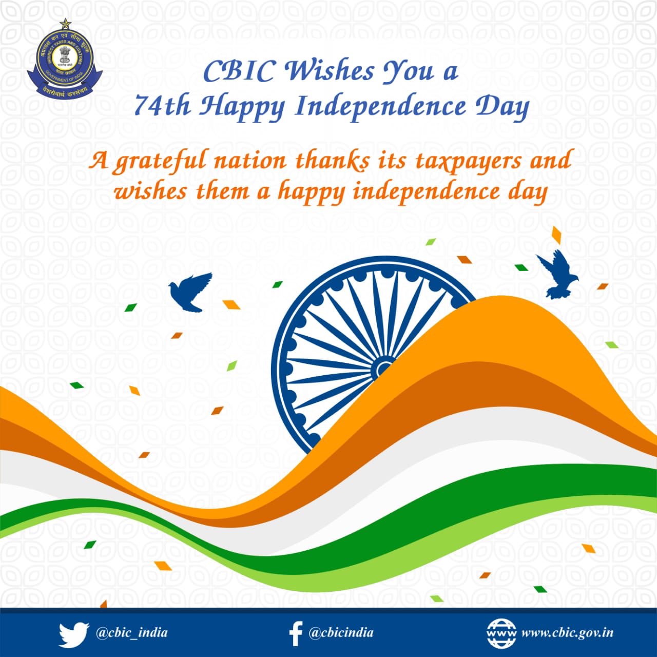Cbic On Twitter Cbic Wishes You On 74th Indiaindependenceday A Grateful Nation Thanks Its Taxpayers And Wishes Them A Happy Independence Day स वत त रत द वस Aatmanirbharbharat Https T Co Qqjbjhedxi